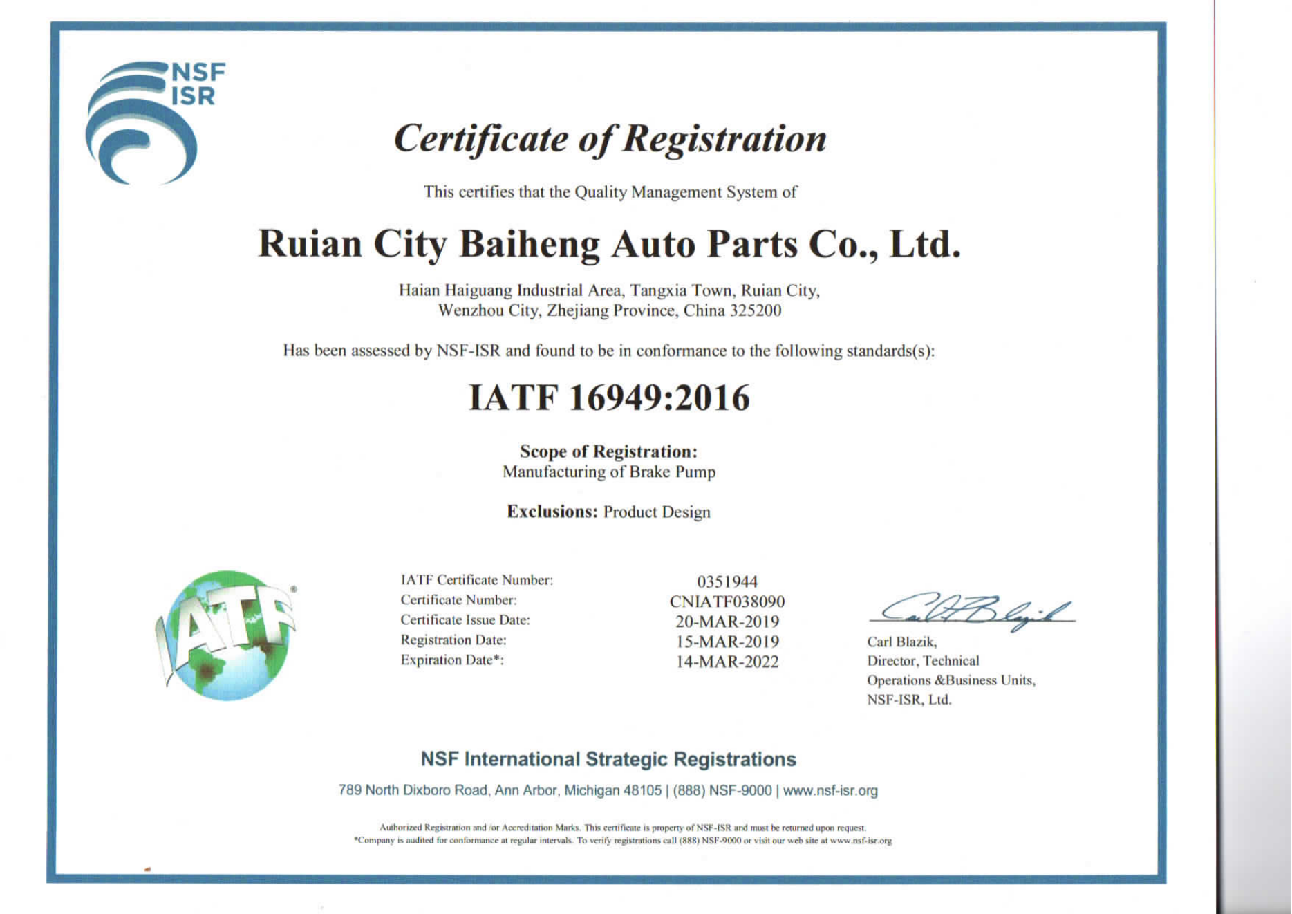 瑞安市百亨汽车配件有限公司是一家专业从事液压泵的生产商。产品主要有制动主缸,制动分泵,离合器总泵,离合器分泵。工厂拥有国内外先进的生产设备和严格的检测工艺流程,具有先进的生产技术和管理经验,以质量为根本,控制产品品质,并能根据市场和客人的需求及时高效的开发出各种新产品,使我们工厂制造的每一个产品都符合国际标准。